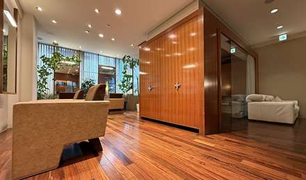 ブラウンの木が落着きを感じさせる空間で、リラックスしていただける上質なひとときをご提供いたします。
