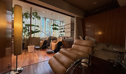 プライベート空間の個室では、ヒーリングミュージックが流れる中、ヘッドスパやフェイシャルスパでお寛ぎください。