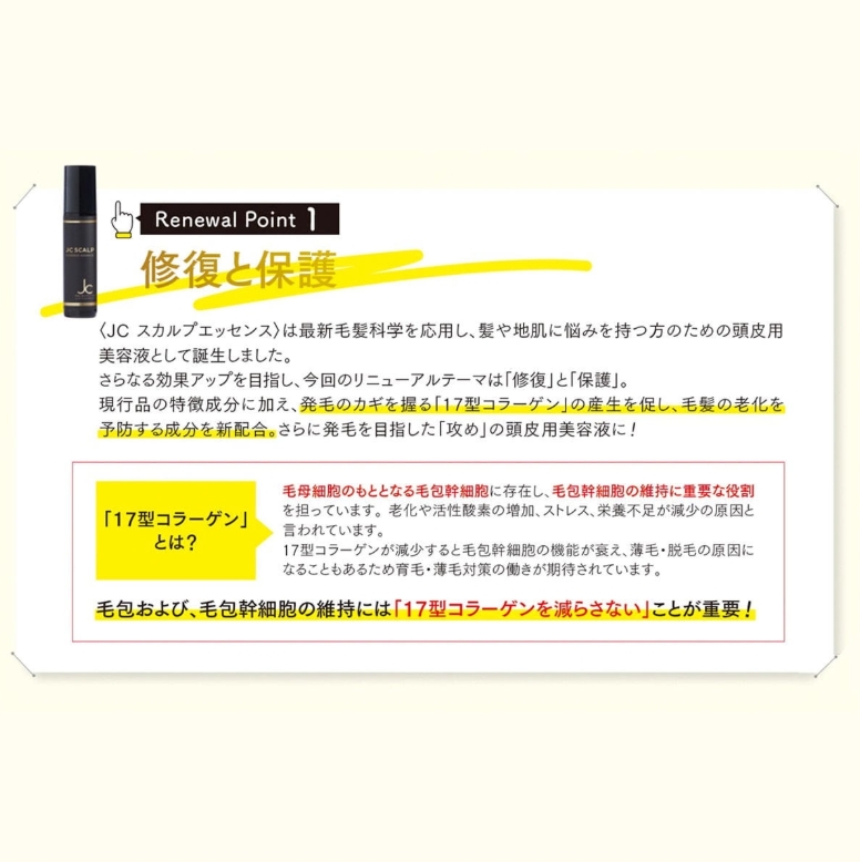 リニューアルした 「JC スカルプエッセンス アドバンス」 は、