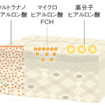 マイクロヒアルロン酸FCHとHA4浸透型ウルトラナノヒアルロン酸。分子量の異なる二つのヒアルロン酸を組み合わせることで、類まれな高保水力を発揮。皮膚のヒアルロン酸と真皮のコラ一ゲンの産生をサポートします。