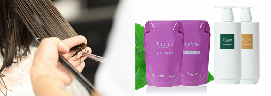 アトピーや敏感肌の方でも安心して使える、肌細胞を傷つけない特許取得シャンプー「バーデンス」を使用しています。安心・安全を第一に肌と髪にやさしいケアをお届けします。